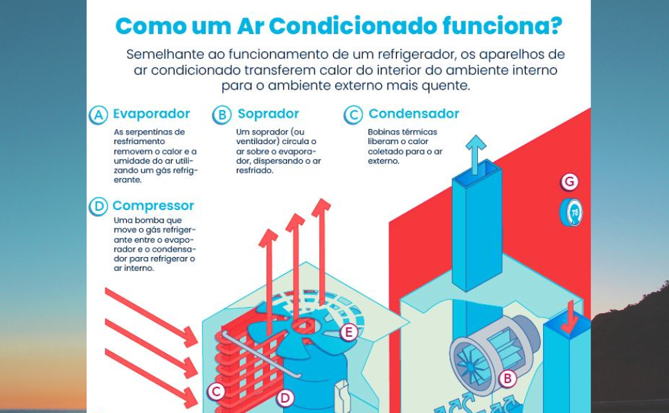 Primeiramente, o ar-condicionado convencional funciona de maneira simples: ele liga o compressor, resfria o ambiente até a temperatura desejada e depois desliga.